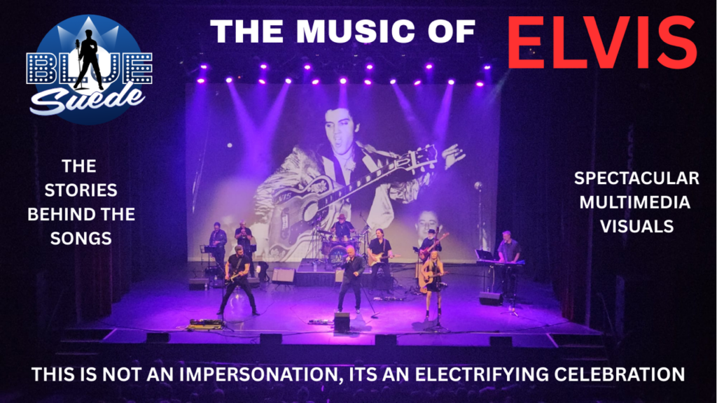 Blue Suede features a powerful 12-piece band, complete with a dynamic horn section and rich harmonies, delivering arrangements from Elvis’ early rockabilly roots to his iconic Las Vegas era. The show is elevated by immersive visuals, storytelling, creating a concert experience like no other. Blue suede is always 100% live, No Costumes and No backtracks. Performing hits like Heartbreak Hotel to Suspicious Minds and everything in between this is a show not to be missed. With a growing reputation for selling out theatres, Blue Suede has quickly become one of the most exciting and respected Elvis tribute productions today — thrilling lifelong fans and introducing new audiences to the timeless music of Elvis Presley. This is a show like no other.