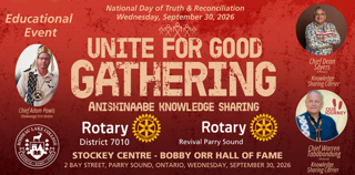 Please be advised the Rotary Revival Unite for Good Gathering will be held on Canada’s National Day of Truth and Reconciliation, Wednesday, September 30th, 2026, at the prestigious Charles W. Stockey Centre for the Performing Arts, Parry Sound, Ontario. The Unite for Good Gathering is a heartfelt reconciliation in-action community event, a living act of remembrance and... Read more »